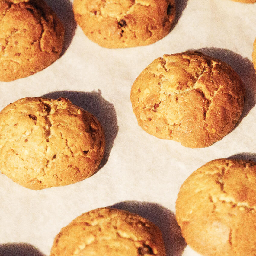 Riquísimos galletones de almendra, tostados y elaborados al horno. Una experiencia de sabores y sonidos crujientes.